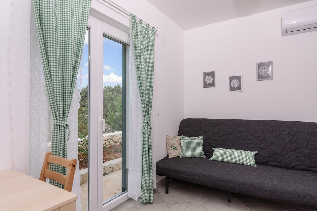 Appartement DALI ligt 100 meter boven de baai en het strand van Ljubljeva Het heeft een prachtig uitzicht op zee en kleine Adriatische eilanden en ongerepte natuur. Het is een ideale plek voor een vakantie voor gezinnen die genieten van rust en prachtige natuur. Nieuw gebouwd appartement is uitgerust met alles wat een gezin nodig heeft, om van hun vakantie te genieten: moderne volledig uitgeruste keuken, woonkamer met airconditioning, satelliet-tv, 2 slaapkamers, houten vloeren, badkamer, groot terras met uitzicht op zee en echt Dalmatisch landschap – verdure, tuingrill en natuurlijk; parkeerplaats is verzekerd. Excursies met de auto: - 10 minuten naar Marina - supermarkt, slager, markt, restaurant, bar, postkantoor, ACY-marina - 25 minuten naar Primosten - antiek deel van de stad, discotheek, strand, restaurants, bar - 30 minuten naar Trogir - haven/mogelijkheid voor excursies op eilanden, antiek deel van de stad met een kathedraal beschermd door UNESCO, restaurants, bar, discoteche - 60 minuten naar Split – redding van een oud paleis van Diocletianus, beschermd door UNESCO, haven/ mogelijkheid voor excursies op eilanden, restaurants, bar, musea. - 80 min Nacional park van Krka - watervallen, restaurant. - 90 minuten naar Omis - Rafting