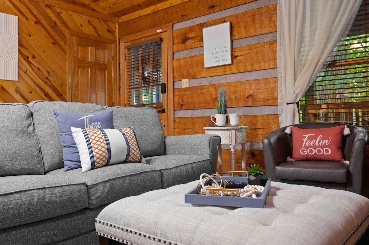 * 1 mijl naar Parkway * King Suite * Extra groot hottub * Seizoensgebonden uitzicht Welkom bij Spring in the Smokies! Hillside Hideaway is een gezellige hut met 1 slaapkamer, 1 badkamer met uitzicht en een groot bubbelbad. Op minder dan 1,5 km van de parkway vind je alle bezienswaardigheden, restaurants en winkels. Je zult het gevoel hebben dat je buiten de gebaande paden bent, maar toch zo dicht bij alles! Het vakantiegebied ligt aan de overkant van Soaky Mountain Water Park. Houten huisje naast de deur is momenteel in aanbouw.
