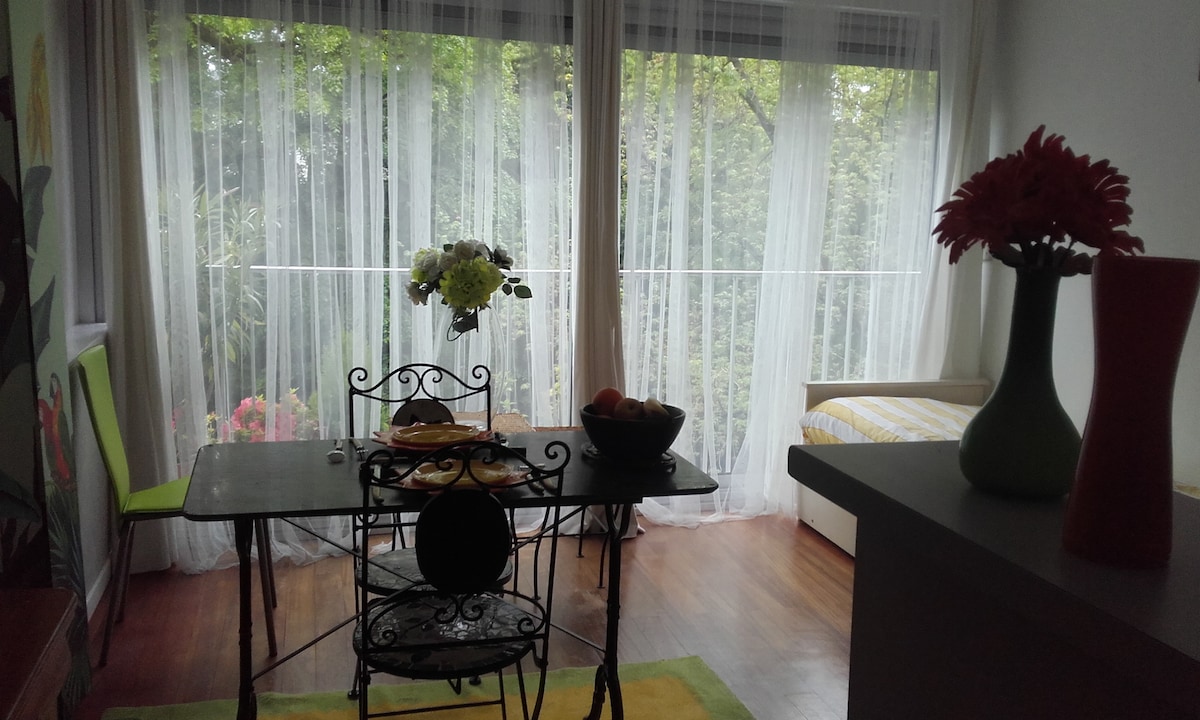 Aangename studio met uitzicht op de bergen