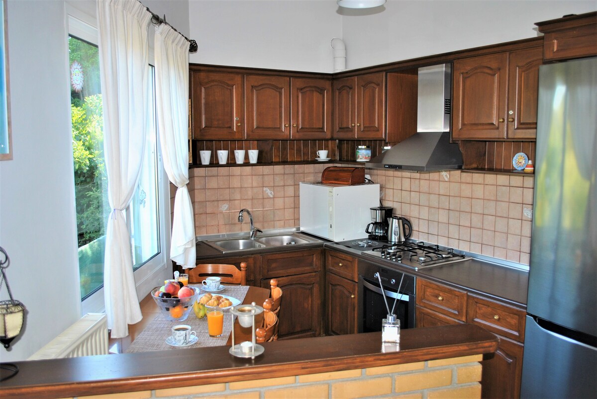 De authenticiteit van de omgeving en het huis, 200 jaar oud stenen gebouw, inspireerde ons om een prachtig en functionele ruimte te creëren, vol licht, kleuren en zingende vogels, die vertrekken vanaf de open balkondeuren om voorbij te gaan.Het geweldige uitzicht vanaf de patio en de tuin, naar de Sea Surface en de groene heuvels, helen en kalmeren.Ideaal voor bezoekers die op zoek zijn naar de echte kant van het eiland. Dicht bij bergen, stranden, (10 minuten rijden met de auto) , Corfu-stad (25 min.