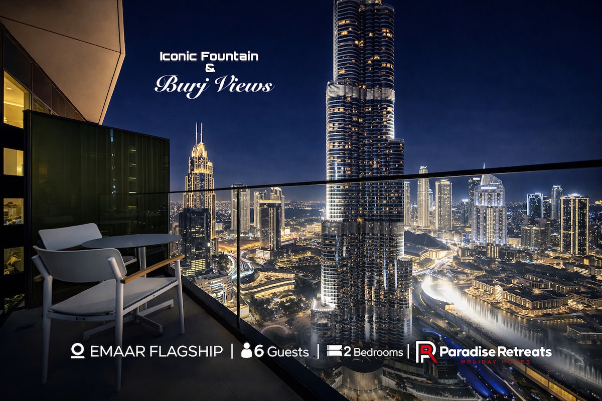 Burj & Fountain Views | Luxe 2BR w/ PS5 + Parking