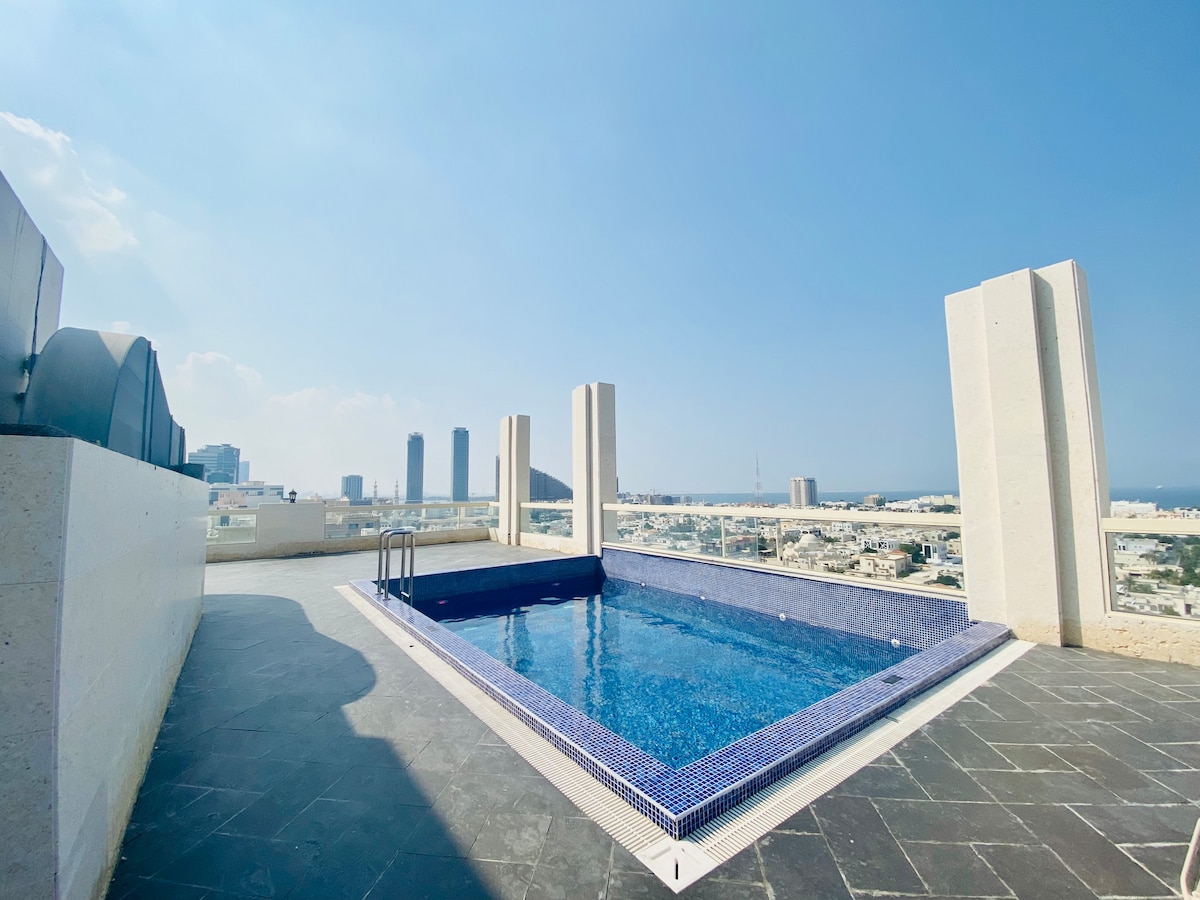 Luxe aan zee, uitzicht op de skyline, zwembad, fitnessruimte, parkeerplaats