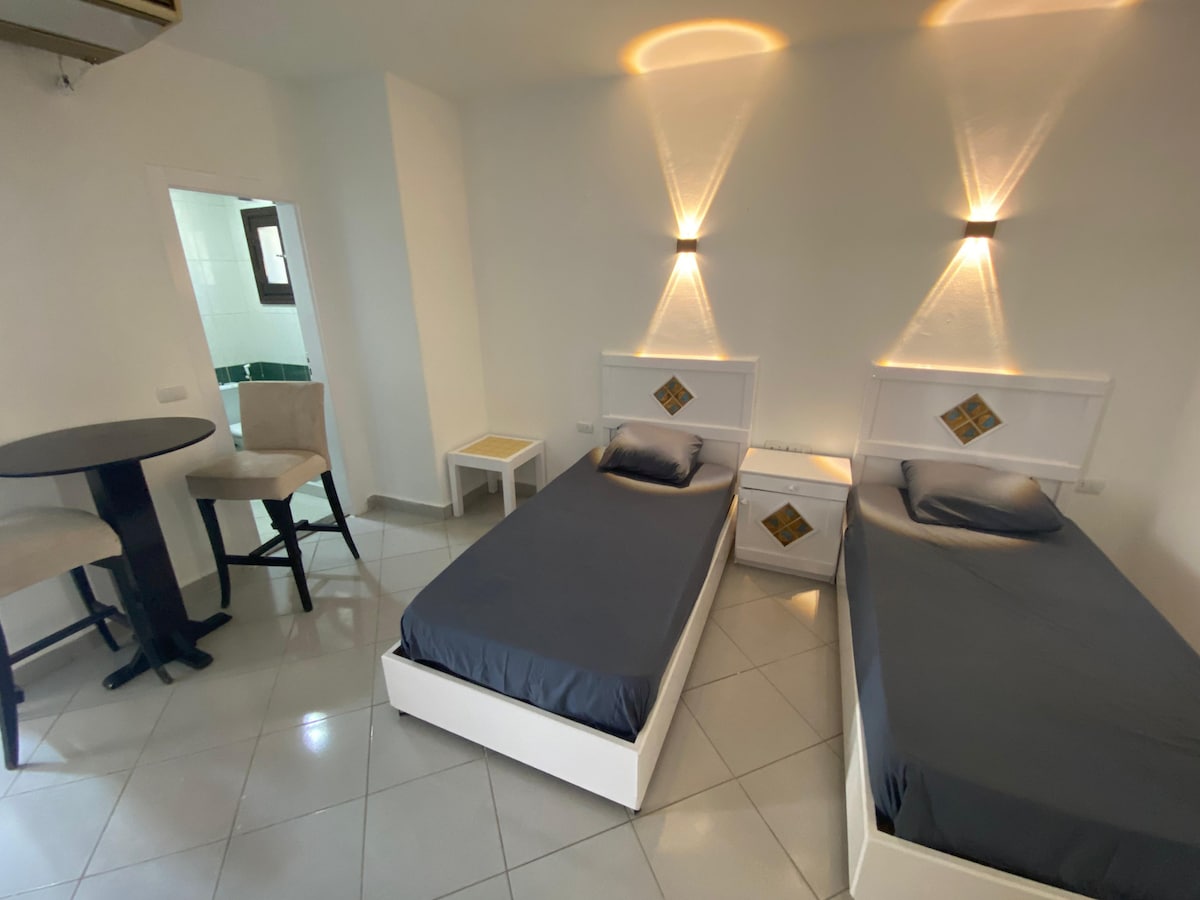 Eerste keer om nieuw appartement te huren,Studio eerste verdieping in delta Sharm Resort, met een prachtig uitzicht, natuurlijk, uitzicht op de tuinen,zwembaden, beveiliging, privacy, rustig, jacuzzi, parkeerplaats, markt, salon, apotheek, café, restaurants, tracks, goede gemeenschap alles wat je nodig hebt en alles wat je verdient .. Voor lieve mensen hoe je voor de korte termijn wilt verblijven in een goed schoon resort