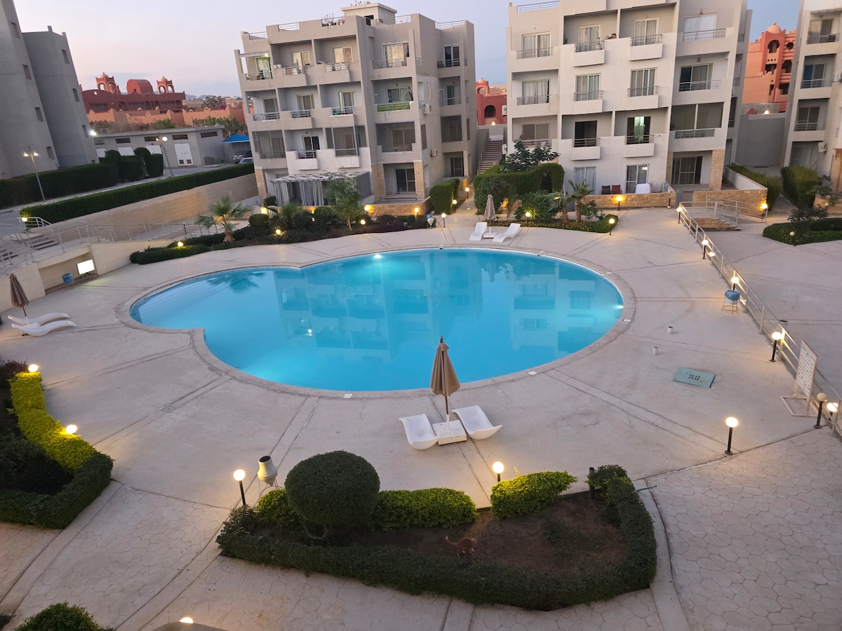Atranquil appartement met zwembad, golfgebied en uitzicht op zee. Stijlvol, gezellig en gevuld met planten. Perfect voor koppels of singles. Voor wie op zoek is naar avontuur, biedt het Rode Zeegebied een overvloed aan activiteiten. Duik in het kristalheldere water om het bruisende zeeleven te ontdekken, begin met spannende watersporten of geniet je gewoon van de zon op de nabijgelegen stranden. Of je nu op zoek bent naar een romantisch uitje, een gezinsvakantie of een serene solo-retraites.
