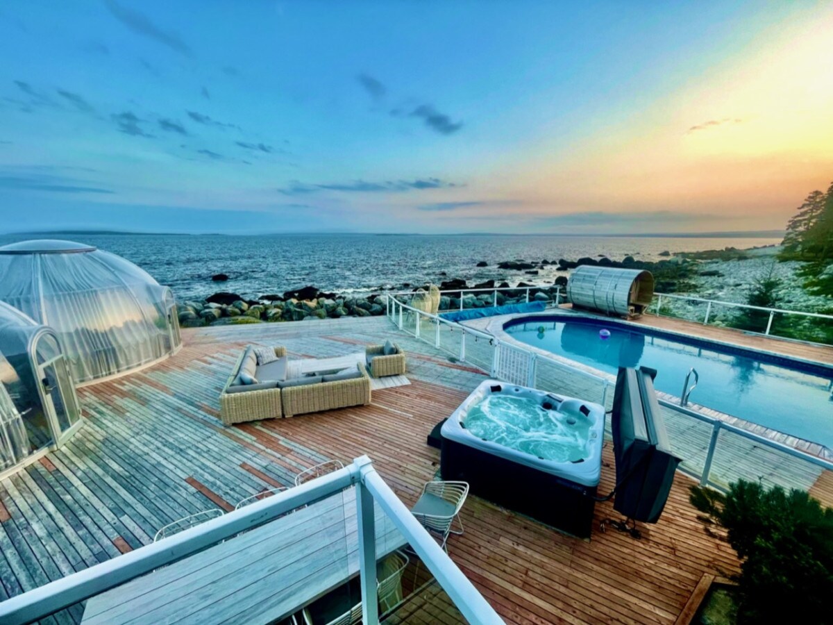 Omgeven door 4000 vierkante meter terras en uitgerust met een groot verwarmd zwembad en een bubbelbad en een eigen panoramische koepelsauna, is dit rustige afgelegen toevluchtsoord de perfecte uitvalsbasis om de beste stranden in Nova Scotia te verkennen of gewoon even weg te komen van alles. Houd er rekening mee dat het verwarmde zwembad alleen operationeel is van half oktober tot half november. (afhankelijk van het weer) sauna, bubbelbad en koepel zijn het hele jaar geopend.