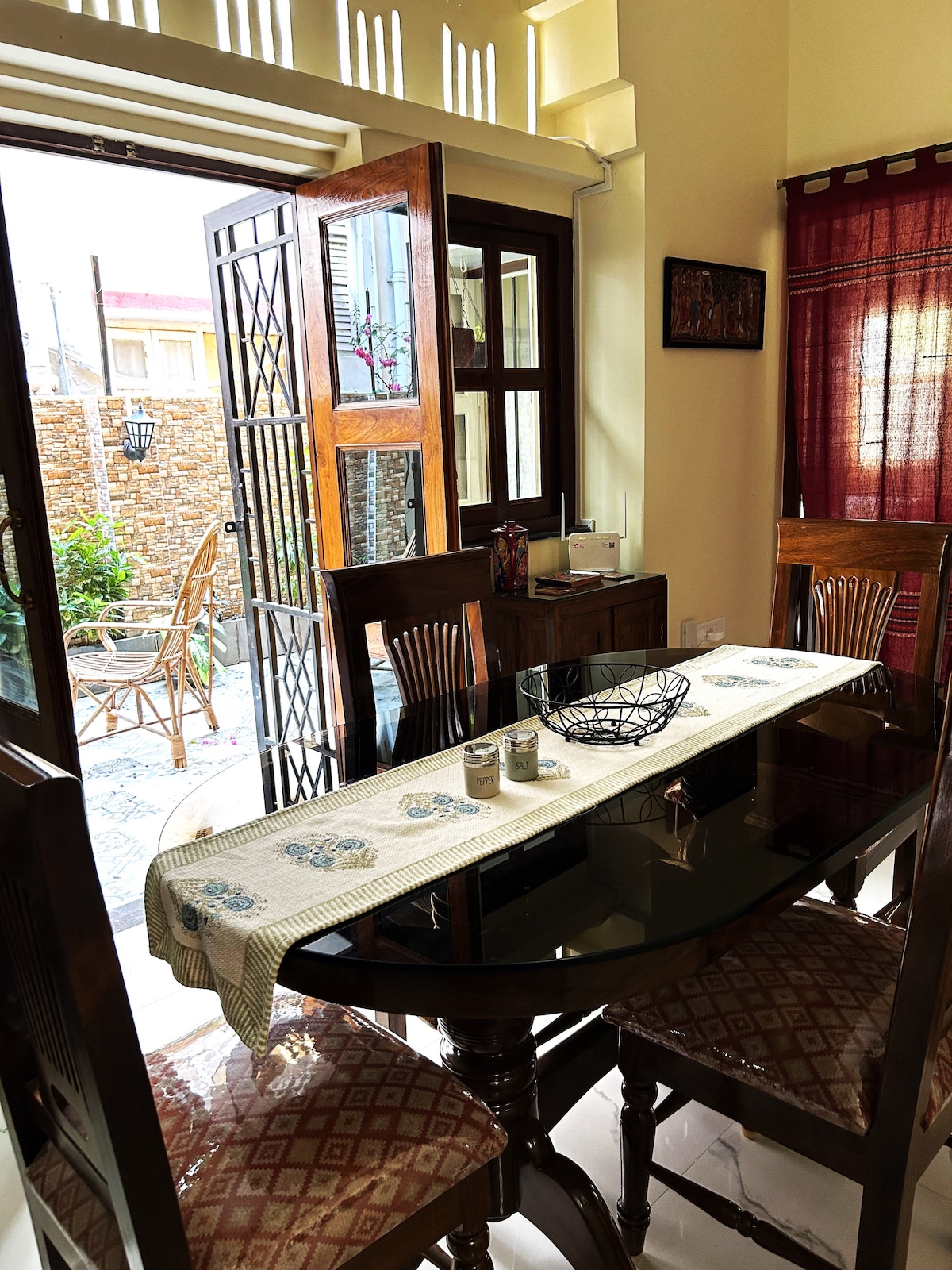 Als je in Kolkata bent, zijn wij je thuis weg van huis in Salt Lake City! Wanneer je ons huis binnenstapt, kom je in het ongelooflijke India-verhaal en onze eeuwenoude filosofie van gastvrijheid - "Vasudhaiva Kutumbakam", wat betekent dat de hele wereld één familie is. Verzachtend gedaan met een mix van handgemaakte decoratieve stukken, handgeschilderde volkskunst van kunstenaars uit landelijk India, meubels in antieke stijl, zachte en warme verlichting, een groot terras of balkon - het is een perfect comfortabel stel-vriendelijk privéverblijf.