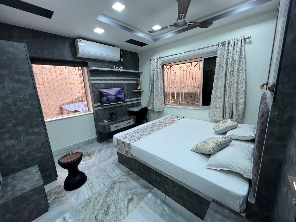 Een slaapkamer 1000sqft privéflat in Ballygunge met uitzicht op de hoofdweg Inchecken 13.00 uur & c/out 11.00 uur STRENG 3e gast tegen betaling Evenement- en feestdecoratie mogelijk tegen meerprijs in huis 1e verdieping via trap & Geen Lift dus niet geschikt voor Ouderen. Roken toegestaan Schade wordt betaald door de gast 1 badkamer Keuken heeft koelkast,inductie,magnetron, keukengerei, broodrooster,waterkoker enaquaguard Wifi 175mbps Smart-tv-login met gastgegevens Gasten moeten een geldig legitimatiebewijs indienen. Betaald parkeren (birla mandir)