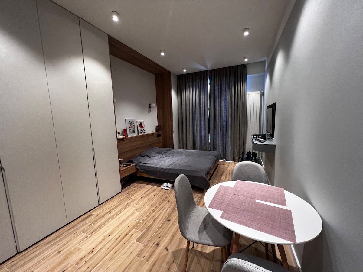 Beste vrienden, we zijn blij om ons prachtige appartement van 48 m ² met één slaapkamer in Gori, Georgia te presenteren - we hebben hart en ziel in het ontwerpen ervan gezet en het een thuis weg van huis maken voor onze gasten! Het appartement is gelegen in het centrum van Gori, op de 8e verdieping van een nieuwe, zeer gewilde Gori Palace ontwikkeling en heeft een prachtig uitzicht op de stad en de heuvels vanaf het balkon!