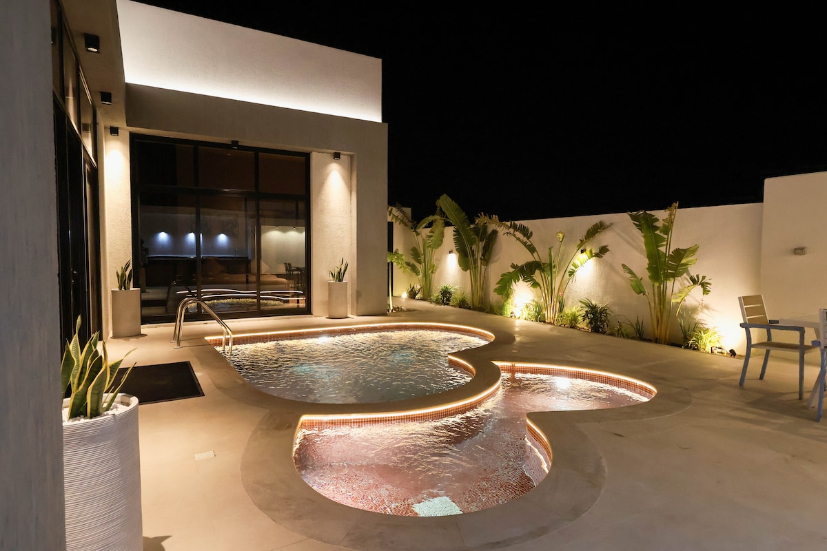 Free WiFi Enjoy family cozy stay Enjoy Full privacy Enjoy warm romantic moments in the private pool(Heated) If you fancy dinning inside the pool, this is the place for it-check photos The master bedroom has in-room warm jacuzzi(Takes 2 person), shower cabin in the toilet Sorry the master pool is not heated however you will enjoy warm closed door private pool