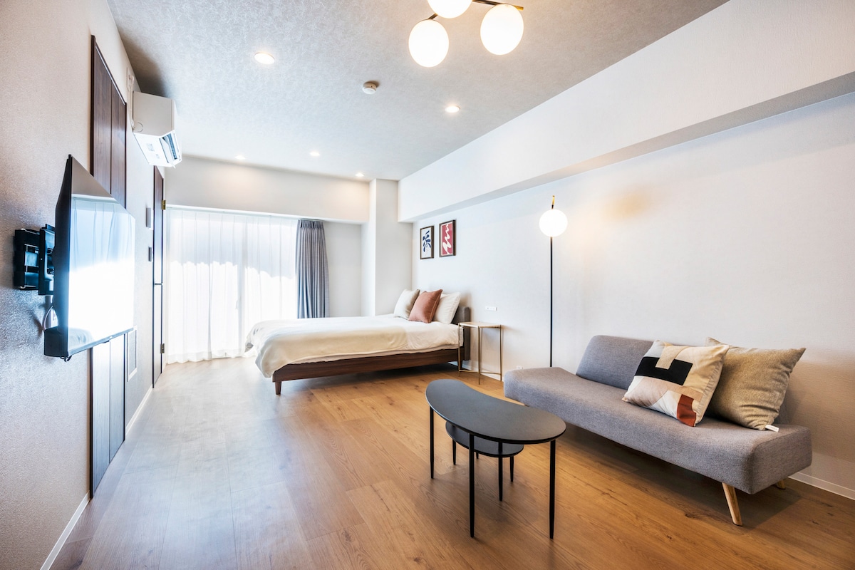 Experience the feel of a standard-sized Tokyo apartment in this deluxe studio for 2. Enjoy restful nights on a queen-sized bed and a functional layout ideal for remote work. Whether you're balancing work and wellness or simply unwinding, this space is a great urban sanctuary.
