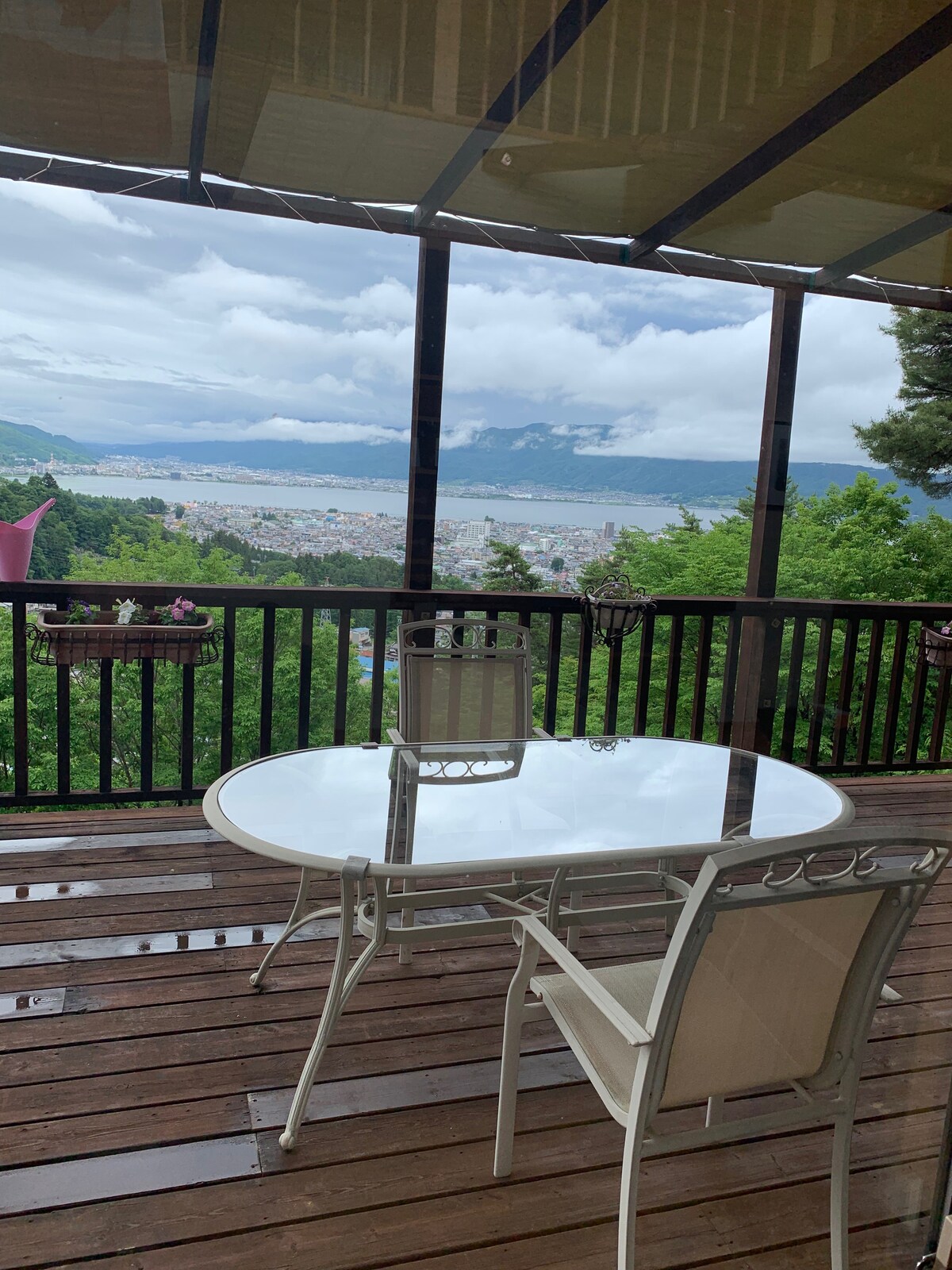 Charmant groot huis - 3 bdms allemaal met tweepersoonsbedden + 1 eenpersoonsbed, grenzend aan bossen op de heuvels van Shimosuwa, met een spectaculair uitzicht op het meer van Suwa en Mt Fuji. Een groot terras met een prachtig uitzicht, grote keuken, woon-eetkamer, kantoor, speelruimte voor kinderen, piano, grote tv zorgt voor een ontspannen verblijf. Centrale verwarming voor de koudere maanden, koeler klimaat in de zomer. Perfect gelegen tussen Matsumoto/Kiso Valley en de Yatsugatake bergketen maakt Shimosuwa een geweldige keuze om te verblijven. Fietsvriendelijk!