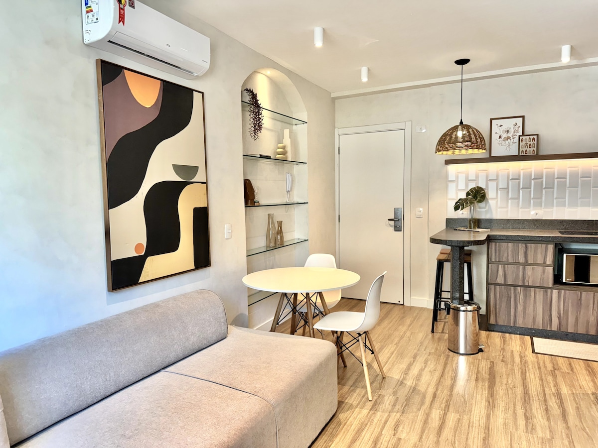 Studio no All Batel, com 29m² de muito conforto, moderno e equipado. Composto de cozinha/quarto integrados com sacada. Com uma decoração clean e aconchegante, cada detalhe foi pensado para receber vc e proporcionar uma estadia memorável. Excelente conforto! O Edifício recém inaugurado, com piscina de borda infinita, academia, coworking, etc. Com toda infraestrutura, na região Central/Batel próximo a shoppings, praças, bares, HardRock, restaurantes, farmácia e hospitais. Excelente localização!