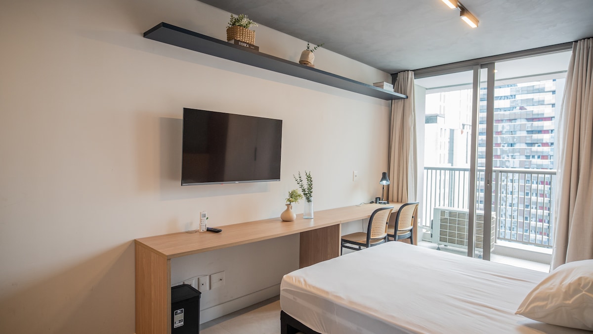 Welkom in je stedelijk uitje. Moderne en uitgeruste studio, perfect voor diegenen die comfort en functionaliteit zoeken op een van de beste locaties in de stad. Compact ontwerp met gepland meubilair, voor comfort en optimalisatie. Keuken uitgerust met essentiële gebruiksvoorwerpen voor het bereiden van maaltijden. 50 inch smart-tv met streamingdiensten. Premium matras voor perfecte nachtrust. In de buurt van restaurants, supermarkten. Boek nu en geniet van een onvergetelijk verblijf.