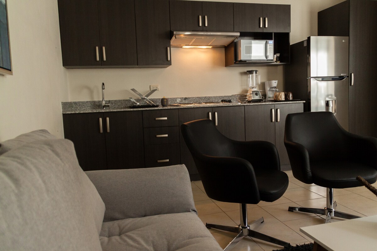 Boetiekappartement, ingericht met fijne designdetails. Volledig onafhankelijk in een set van 6 appartementen in een onlangs gerenoveerde woning. Gelegen aan de rand van de stad, op een paar stappen van het Interplaza Shopping Center, de nieuwste en meest moderne in de stad. Het appartement heeft 4 privékamers: 1) Woonkamer met keuken, 2) Slaapkamer met kast, 3) Volledige badkamer, 4) Ruimte met wasmachine. TV met Claro HD-tv-signaal 50 Mbps wifi-netwerk Uitgeruste keuken.