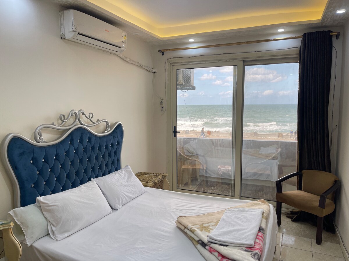 Gelegen in Alexandria Sporting gebied, dit luxe unieke 2 BD appartement aan het water met een prachtig uitzicht waar de schoonheid van de Middellandse Zee centraal staat, dicht bij alle bezienswaardigheden. - Twee slaapkamers met elk een queensize bed. - Wonen: Sofa met 3 zitplaatsen (converteerbaar naar bed), open ruimte verbonden met een geïntegreerde eethoek - Balkon: balkon van 14 m ² met een panoramisch uitzicht op de Mitterrandian is de perfecte plek om naar de zonsondergang te kijken - ultramoderne badkamer en moderne keuken