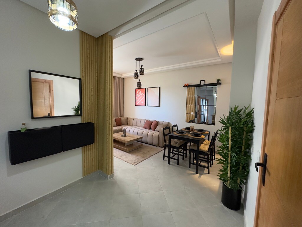 Geniet met je gezin van dit fantastische nieuwe, rustige en veilige huis, dicht bij alle voorzieningen. Wees met het hele gezin in deze chique plek. Het appartement ligt op slechts 7 minuten rijden van de prachtige stranden van de Atlantische kust, 5 minuten rijden naar de luchthaven van Tanger en TFZ Free Zone en op slechts 5 minuten rijden van het Tanger Grand Stadium en het busstation. Op 200 meter afstand en op de weg naar Rabat vind je een hypermarkt en verschillende gerenommeerde merken