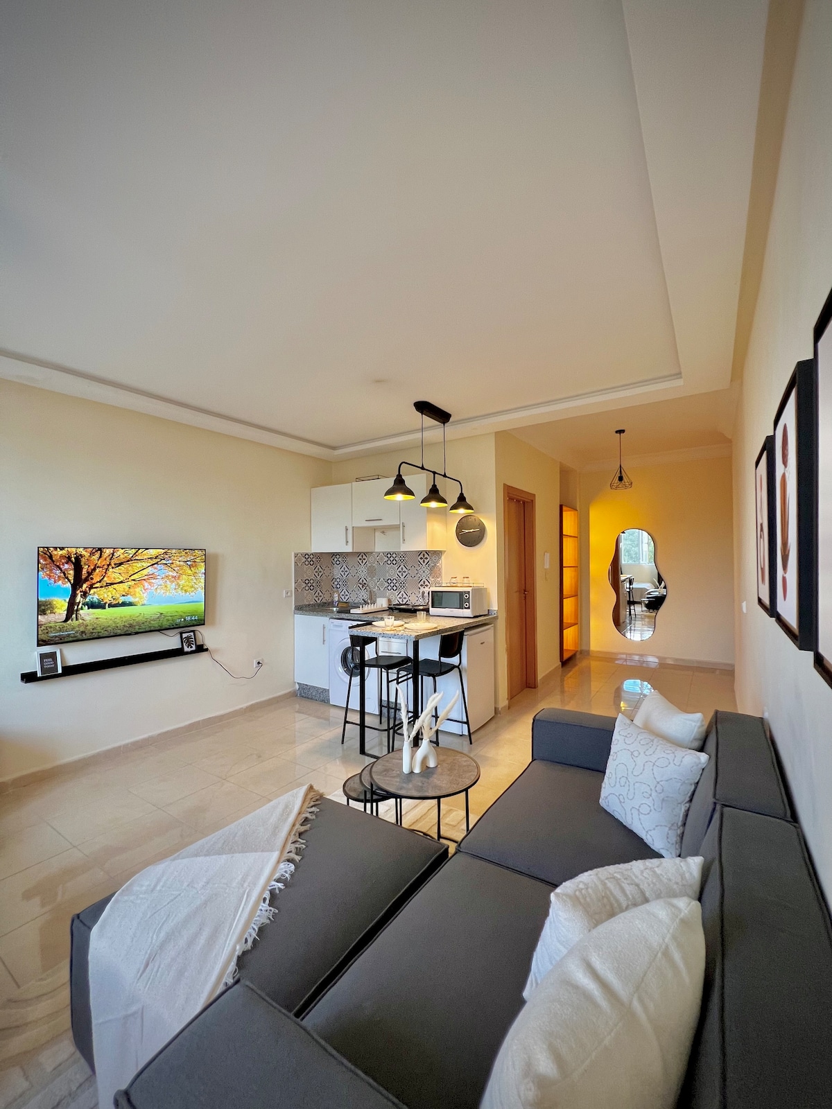 Bienvenue dans notre Studio haut de gamme, idéalement situé à seulement 10 minutes de la plage, 2minutes de l’aéroport et à proximité des plus beaux sites de Tanger: 20minutes de la grotte d’Hercule, 30minutes du Cap Spartel et 20minutes du centre-ville.Ce logement moderne et élégant offre tout le confort nécessaire pour un séjour inoubliable. Que vous soyez en voyage d’affaires, en famille ou en escapade romantique,ce havre de paix est l’endroit idéal pour profiter de Tanger en toute sérénité.