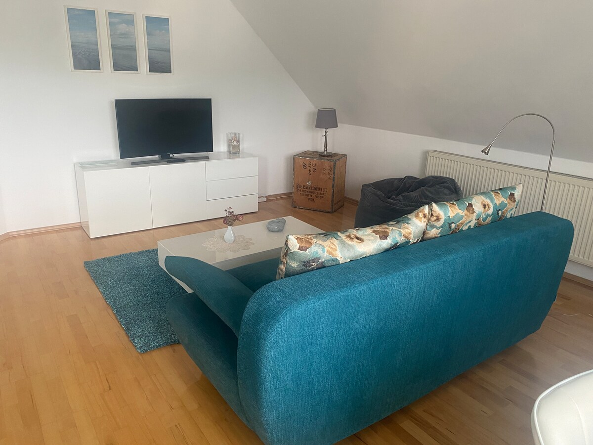Een liefdevol ingericht appartement van ongeveer 70 vierkante meter in het centrum van Mainburg wordt verhuurd. Het is ongeveer 40 km vanaf het vliegveld. Het appartement is goed uitgerust(wifi, koelkast, oven, fornuis, schoonmaakmiddelen, SMART-TV, beddengoed, handdoeken, shampoo) en is geschikt voor 4 personen.
