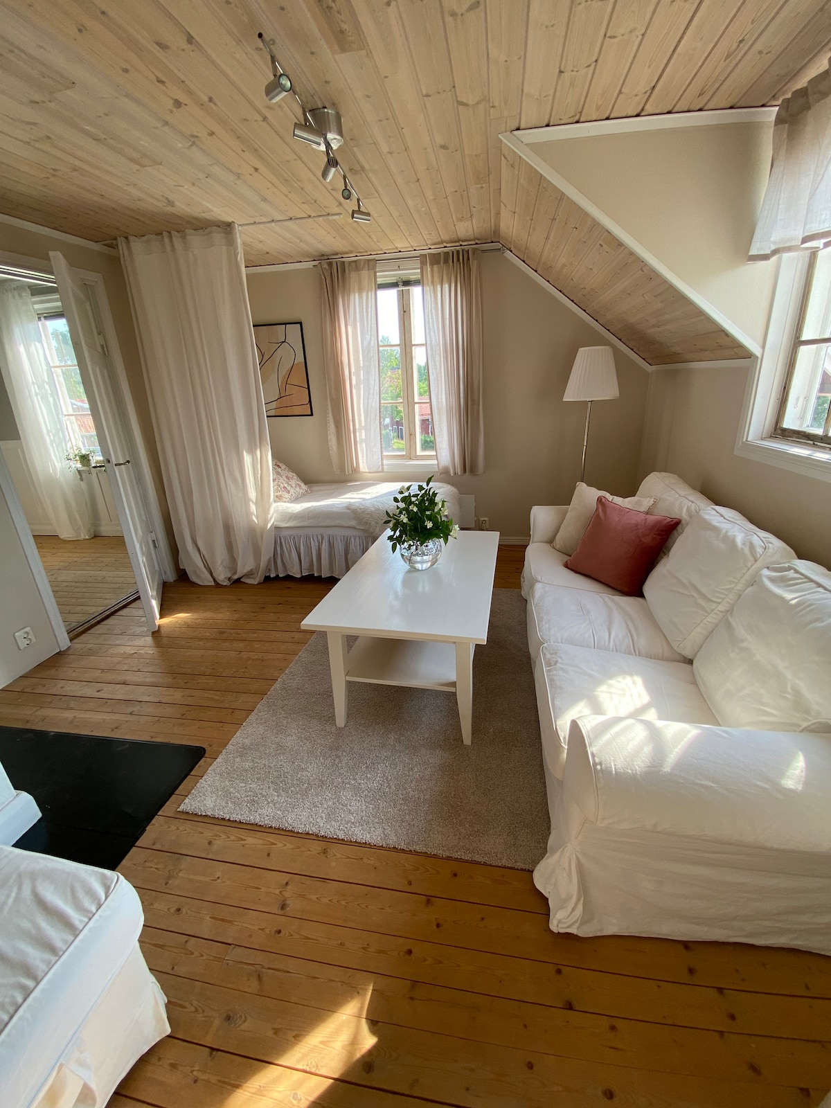 Charmant en gedeeltelijk gerenoveerd appartement in een schuur met gedeeld perceel aan het meer. Fantastische locatie zomer/winter met eigen zandstrand en steiger die wordt gedeeld met de kleine familie van de gastheer. In de winter heb je 3 skigebieden op slechts enkele kilometers afstand. Bjursås Skicenter, Granberget en Romme Alpin. Of waarom niet een bezoek aan Tomteland? Of de populaire spana in Tällberg. Slechts 7 km naar Leksand waar je Hockey Leksands IF en restaurants vindt.