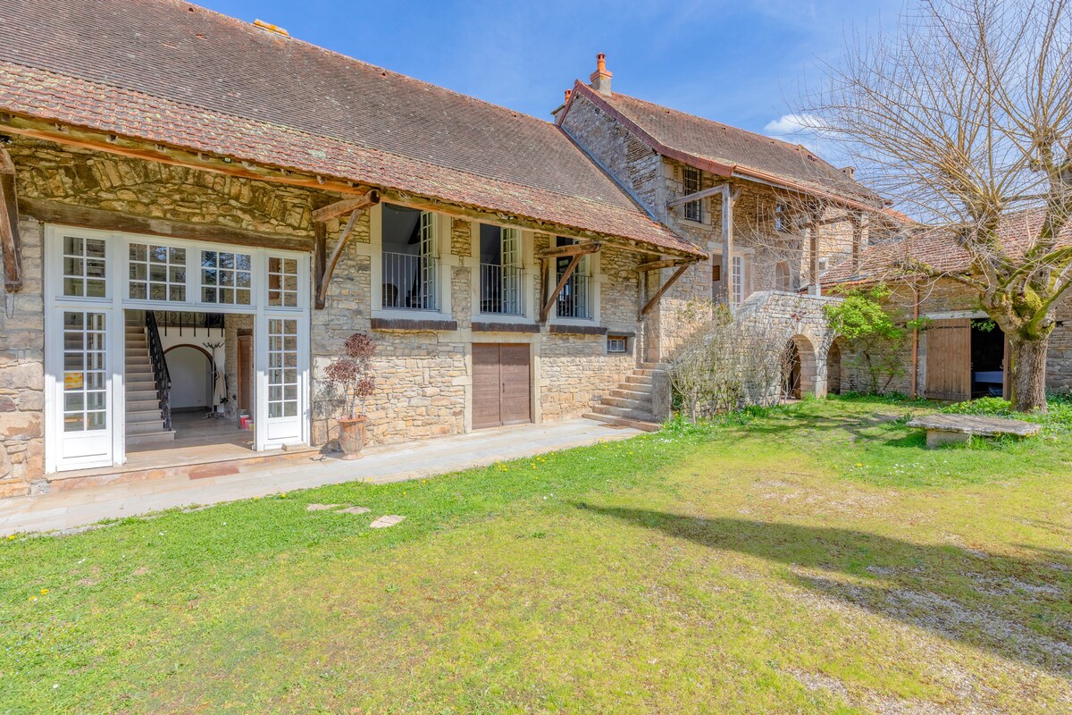 Ruim huisje voor maximaal 4 personen op de boerderij "Les Hirondelles", gelegen in een klein gehucht gedomineerd door zijn Romaanse kapel in het zuiden van de Bourgogne. In een landelijke omgeving geniet u van een panoramisch uitzicht op de Mont Blanc. Een oase van rust en ontspanning. Uw gastheer, Stéphanie ( _artbucher_), een schilder, verwelkomt u in deze gerestaureerde boerderij die modern comfort combineert met respect voor tradities, onafhankelijke entree Het huisje bevindt zich op de eerste verdieping in de oude boerderij 'Les Hirondelles'
