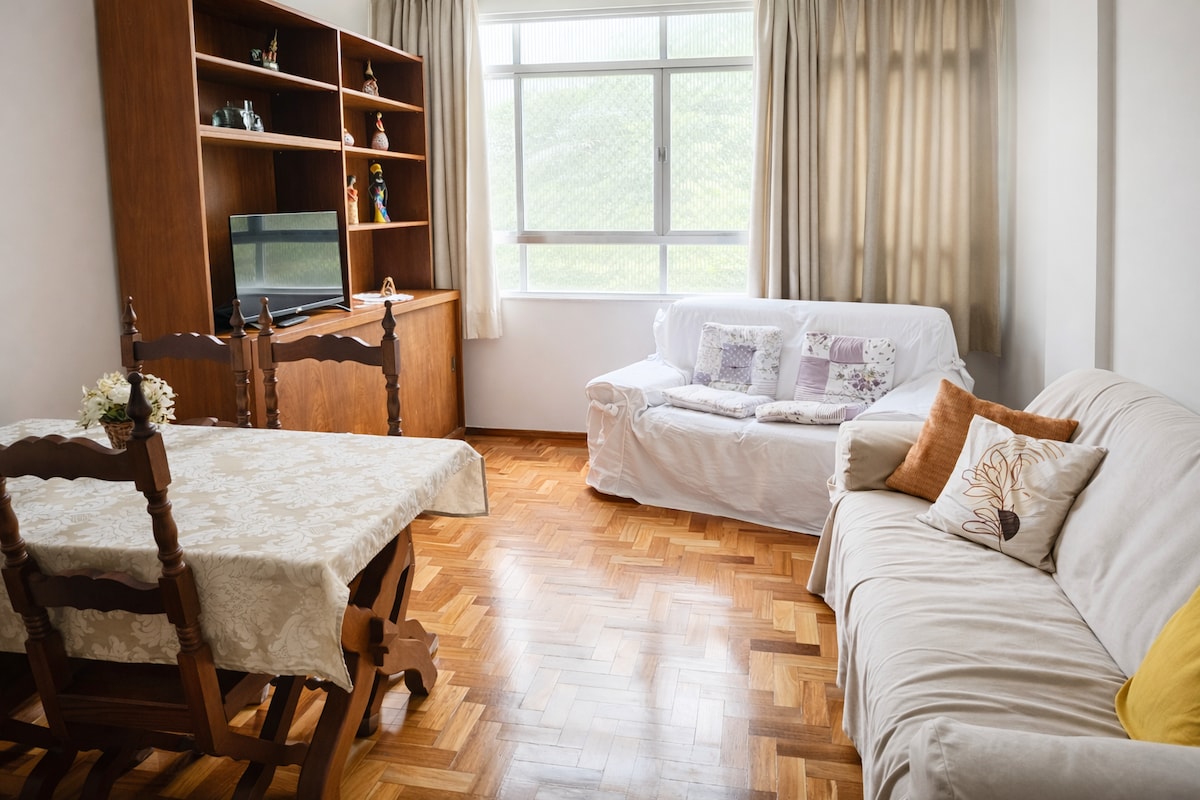 Geweldige locatie! Appartement in het centrum van Nova Friburgo, op Av. Dr. Galdino do Valle Filho. Dichtbij Sigh Square, kabelbaan, Friburgo Shopping en op een paar meter afstand van Av. Alberto Braune, evenals de belangrijkste lokale handel (je kunt te voet naar al deze plaatsen gaan, zonder een auto te hoeven gebruiken). Het appartement beschikt over parkeergelegenheid en lift. Heeft u vragen, neem dan contact met ons op. Wij accepteren maximaal 6 personen, met behulp van de slaapkamer. CAUTION: Outlets zijn 220 volt.