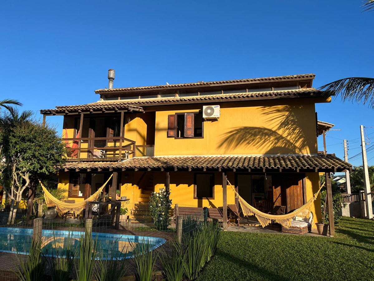 Casa da Janela Azul is het perfecte uitje voor mensen die op zoek zijn naar rust en verbinding met de natuur. Met een prachtige uitstraling van de Ibiraquera Lagoon en een gastvrije sfeer bieden wij dagen van pure rust. Ons huis is huisdiervriendelijk en heeft een omringde privétuin. We liggen op slechts 5 minuten rijden van de paradisíacas Praia do Ouvidor en Rosa Norte. Gelegen in Condomínio Maranata II, tegenover SURFLAND BRASIL.