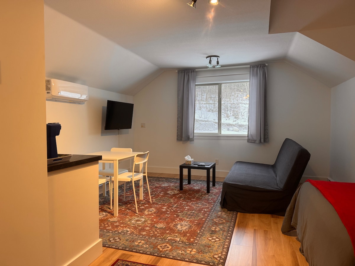 Welkom in ons charmante en gezellige studio gastenverblijf, gelegen op steenworp afstand van het centrum van Vernon, BC. Deze zorgvuldig ontworpen ruimte biedt alle gemakken en gemakken van thuis, wat zorgt voor een onvergetelijke en ontspannende ervaring voor onze gasten. Gratis parkeren is beschikbaar op het terrein. We zijn altijd bereikbaar om je te helpen met eventuele vragen of aanbevelingen die je nodig hebt. We verwelkomen je graag in ons studio gastenverblijf, je thuis weg van huis in Vernon, BC.