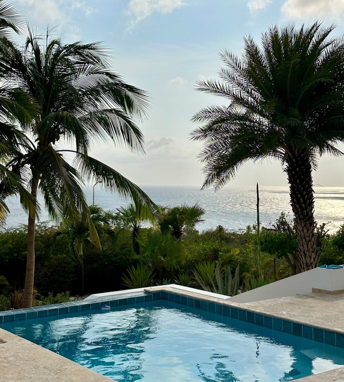 De villa ligt op één van de mooiste plekken op Coral Estate en heeft een spectaculair 180 graden uitzicht over de Caribische zee. De villa is ontworpen rondom de centraal gelegen keuken met bar. Onder het grote palapadak van de porch zit je heerlijk in de schaduw en stap je zo het infinity zwembad in. De villa is vrijstaand, heeft een ruime woonkamer met een grote keuken met bar, 4 slaapkamers, 3 badkamers, een tropische tuin.