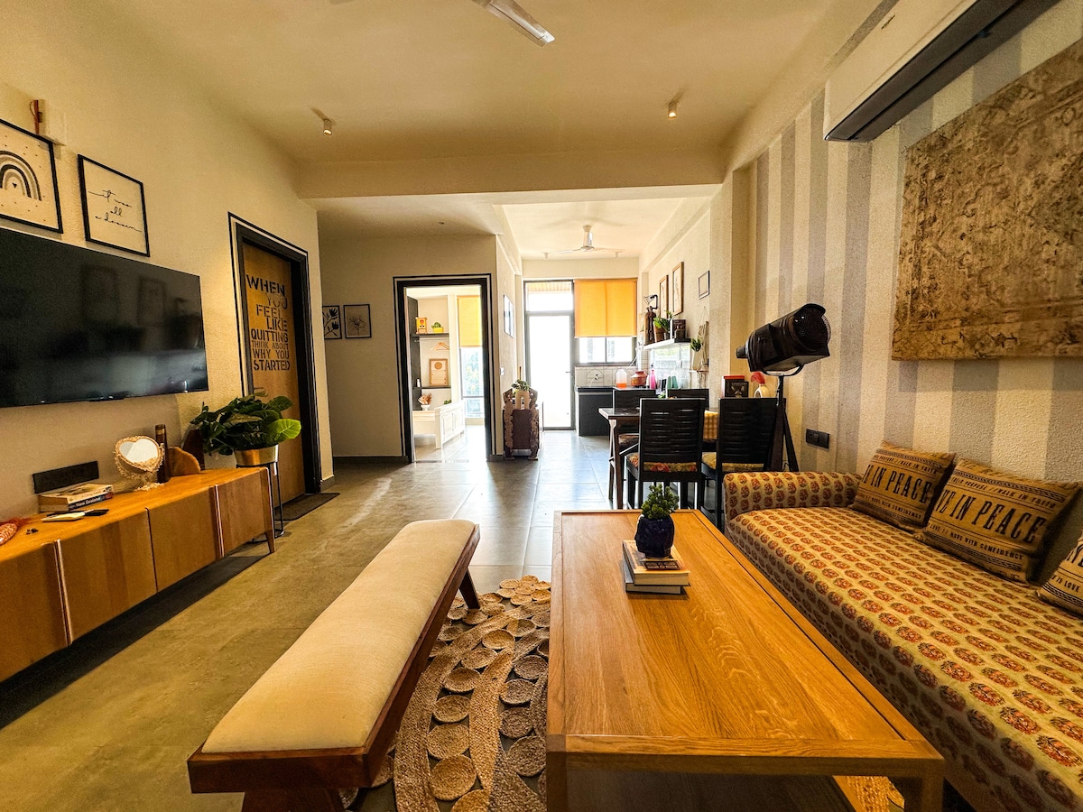 🏡 Welkom bij je verblijf in Jaipur Stap in een modern, zorgvuldig ontworpen 1 BHK-appartement in de goed verbonden buurt van Jaipur - Jagatpura ✨ Comfort en gemak • Heldere woonkamer met smart-tv en internet • Luxe slaapkamer voor een goede nachtrust • Airconditioning in alle kamers • Volledig uitgeruste keuken en wasmachine • Toiletartikelen, haardroger en schone handdoeken • Ideaal voor een kort en lang verblijf 📍 Toplocatie Centraal gelegen met winkelcentra, restaurants, winkels, entertainment - 2 minuten afstand
