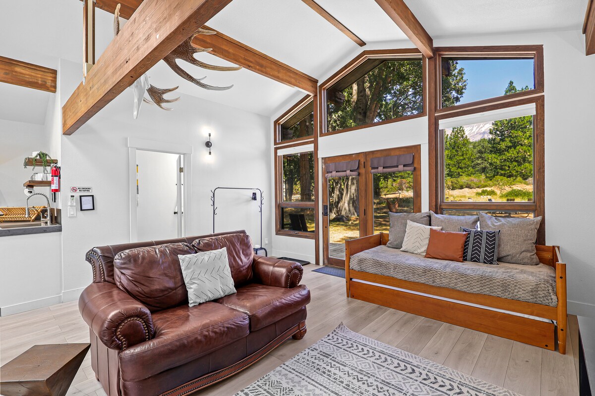 Ervaar deze rustieke, gerenoveerde hut met gewelfde plafonds in de Basecamp Lodge - het perfecte huis het hele jaar door voor het verkennen van Mt Shasta. Een unieke gerestaureerde cederhouten hut in chaletstijl met moderne afwerkingen en ruime accommodaties. Geniet van je koffie op het privédek terwijl je naar de zonsopgang boven Mt Shasta kijkt! Maak een maaltijd in de volledig gevulde keuken, ontspan in de hangmatten en adirondack-stoelen, eet aan de picknicktafels en kijk hoe de alpenglow Mt Shasta oplicht - het uitzicht is ongelooflijk.