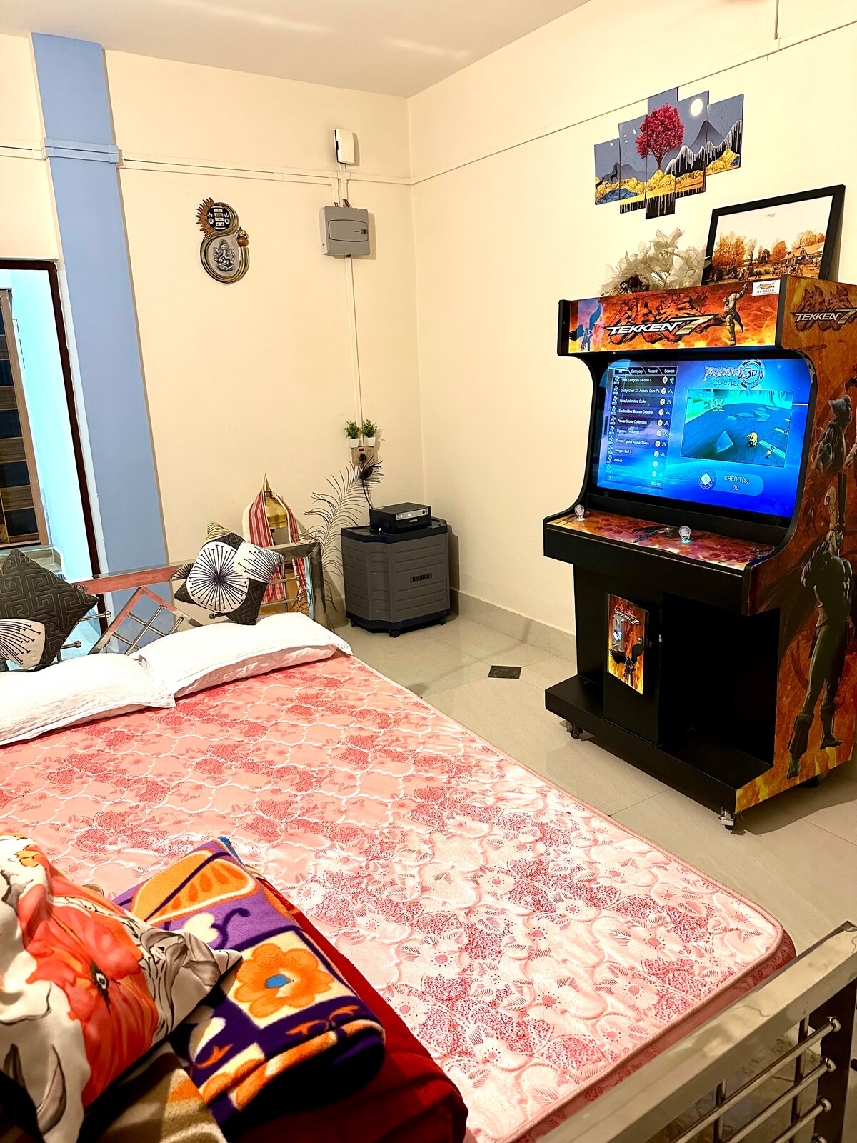 Door de gehele begane grond te boeken heb je toegang tot: 1. Een Deluxe Kamer: een ruime en goed ingerichte kamer. 2. Een standaardkamer: een gezellige en comfortabele ruimte, ideaal om te ontspannen. 3. Een niet-AC-kamer: een budgetvriendelijke optie. Het bad is niet aan de kamer bevestigd. Het is echter net in de gang. Gasten hebben ook exclusieve toegang tot de keuken die 500 dollar in rekening brengt. Het is geschikt voor maximaal 7 personen.