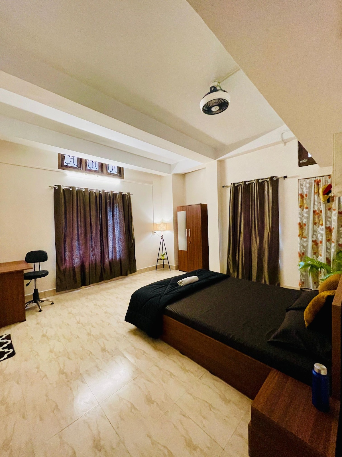 By booking the entire ground floor you will have access to: 1. One Deluxe Room: A spacious and well-furnished room. 2. One Standard Room: A cozy and comfortable space ideal for relaxation. 3. One Non-AC Room: A budget-friendly option. The bath is not attached to the room. However, it is just down the hall. Guests will also enjoy exclusive access to the Kitchen which will charged 500 bucks. It can accommodate unto 7 people max.