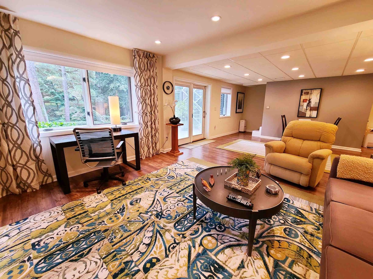 Ruime, lichte privésuite van 830 m²! Geniet van een vlekkeloze, professioneel schoongemaakte ruimte. We subsidiëren meer dan de helft van de schoonmaakkosten voor jou. De suite biedt een eigen werkruimte, een eigen ingang en geen interactie met het hoofdhuis. Perfect voor reizende verpleegkundigen, zakenreizen of Braves-fans. Gelegen in een veilige, luxe omgeving in de buurt van Truist Park, Marietta Square en grote ziekenhuizen. Sleutelloze toegang, volledig bad, keukengerei en rustig. Privépatio.