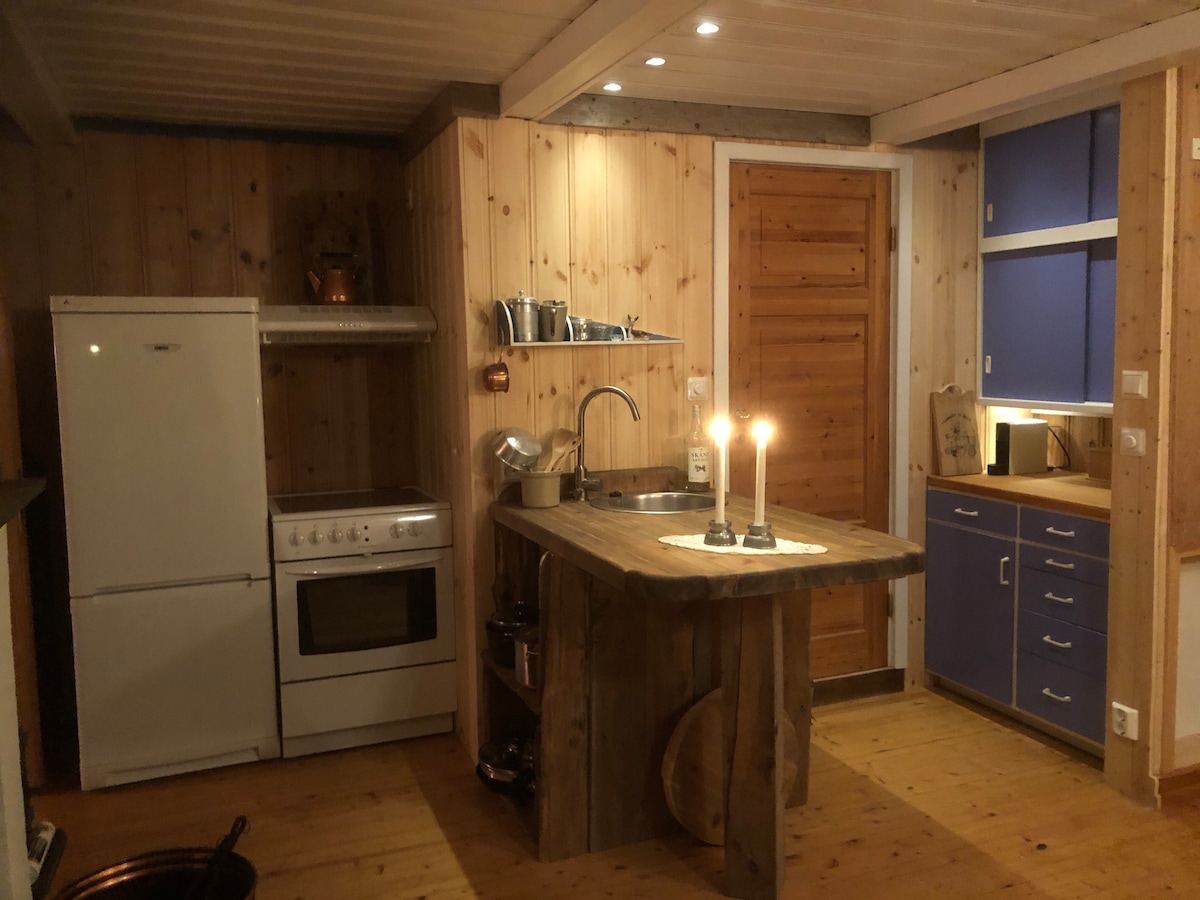 Nu is Gamla gerestaureerd en we kijken ernaar uit om het met onze gasten te delen! Oude materialen en objecten hebben nieuw leven gekregen - en we denken dat de hut gezelligheid uitstraalt. De hut wordt voor aankomst verwarmd. Hier is alles klaar voor een goed, ouderwets hutleven. Water wordt opgevangen in kannen bij de waterpaal dicht bij de hut. Voor de afwas, (pomp)douche en schoonmaken, verwarm water in boiler op de oven. We hebben self-catering opgezet en hebben er vertrouwen in dat onze gasten de hut in een schone en goede staat achterlaten. Iets meer dan 2 km naar de winkel.