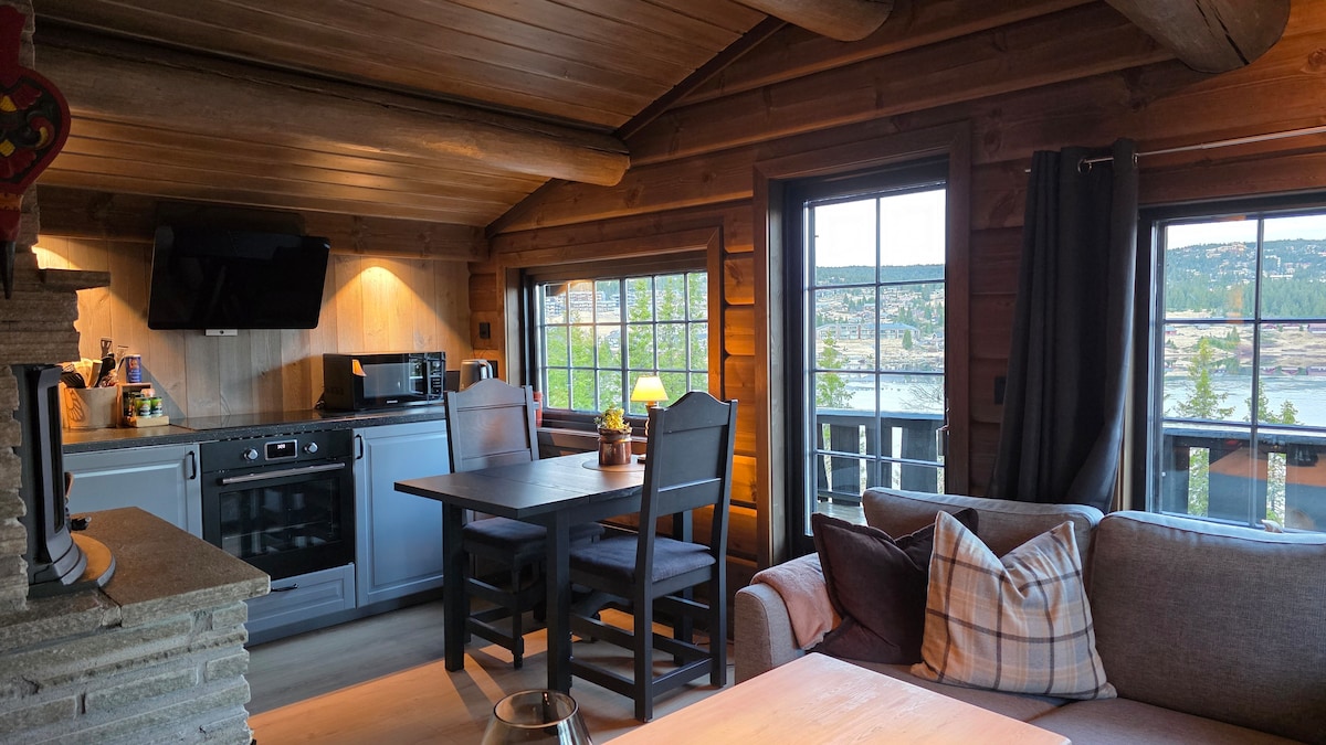 Wake up to a view of the lake and the mountains with 300 km of ski slopes close by. Perfect for a romantic weekend for 2 people; a skiing holiday or a summer idyll with a rowboat. In the middle of Sjusjøen with walking distance to groceries, sports shop and restaurant. The cabin is located in a peaceful area. You will arrive at a heated cabin and a paved road all the way to the cabin. Cozy corner sofa with fireplace, TV and Wifi. Everything included – bed linen and towels- no hidden costs.