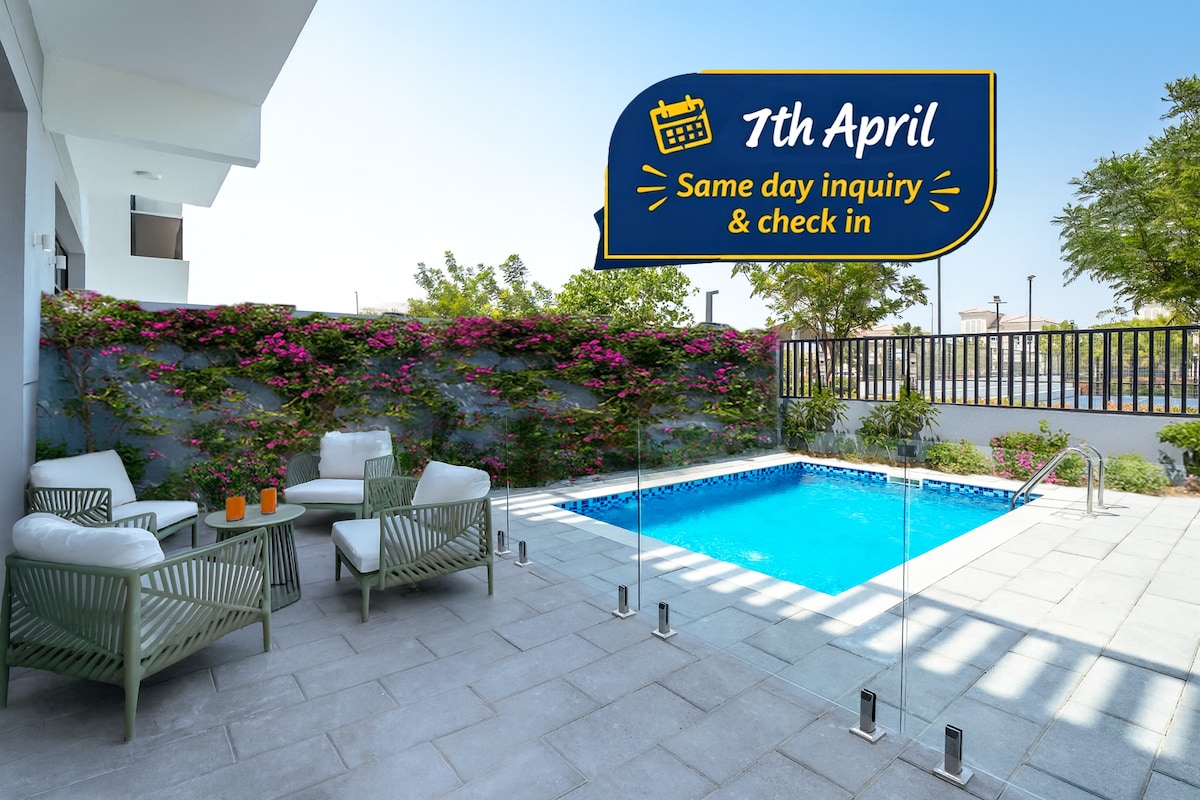 Welkom bij je perfecte uitje in resortstijl. Deze prachtig gelegen villa ligt voor het zwembad met een luie rivier en biedt een prachtig uitzicht op de eerste rij met moeiteloze toegang. Gasten verblijven in een rustige gemeenschap en genieten van ultramoderne faciliteiten, waaronder een moderne fitnessruimte, een prachtige omgeving en avontuurlijke kinderspeelplaatsen. Of je nu op zoek bent naar ontspanning, quality time met familie of Dubai wilt verkennen, deze villa biedt de perfecte balans tussen comfort, natuur en gemak.