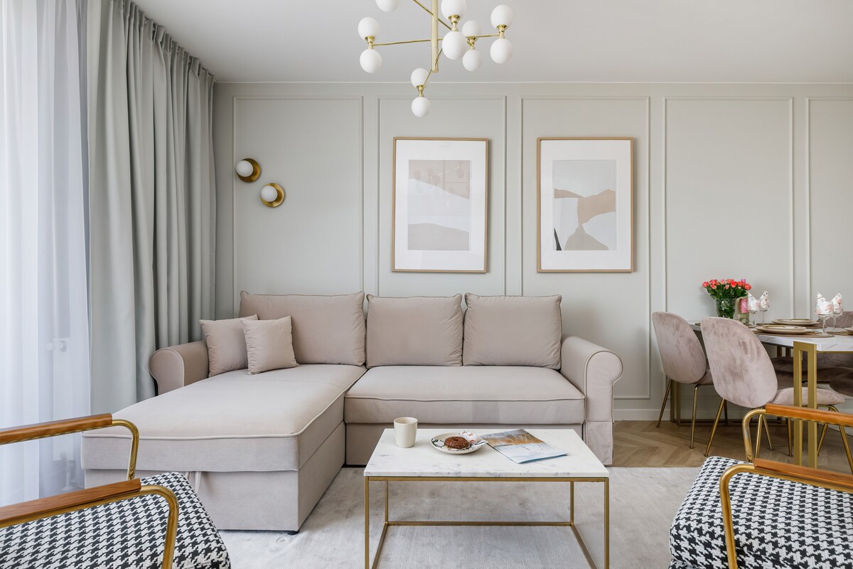 Verblijf in Alma Apartment in het prestigieuze Shellter Rogowo-complex en omarm de ultieme ontsnapping aan zee. Met interieurs geïnspireerd door de kleuren van de zee en het zand, een eigen slaapkamer, een slaapbank, een terras met gedeeltelijk uitzicht op zee en volledige voorzieningen, voel je je thuis – alleen dichter bij het strand.