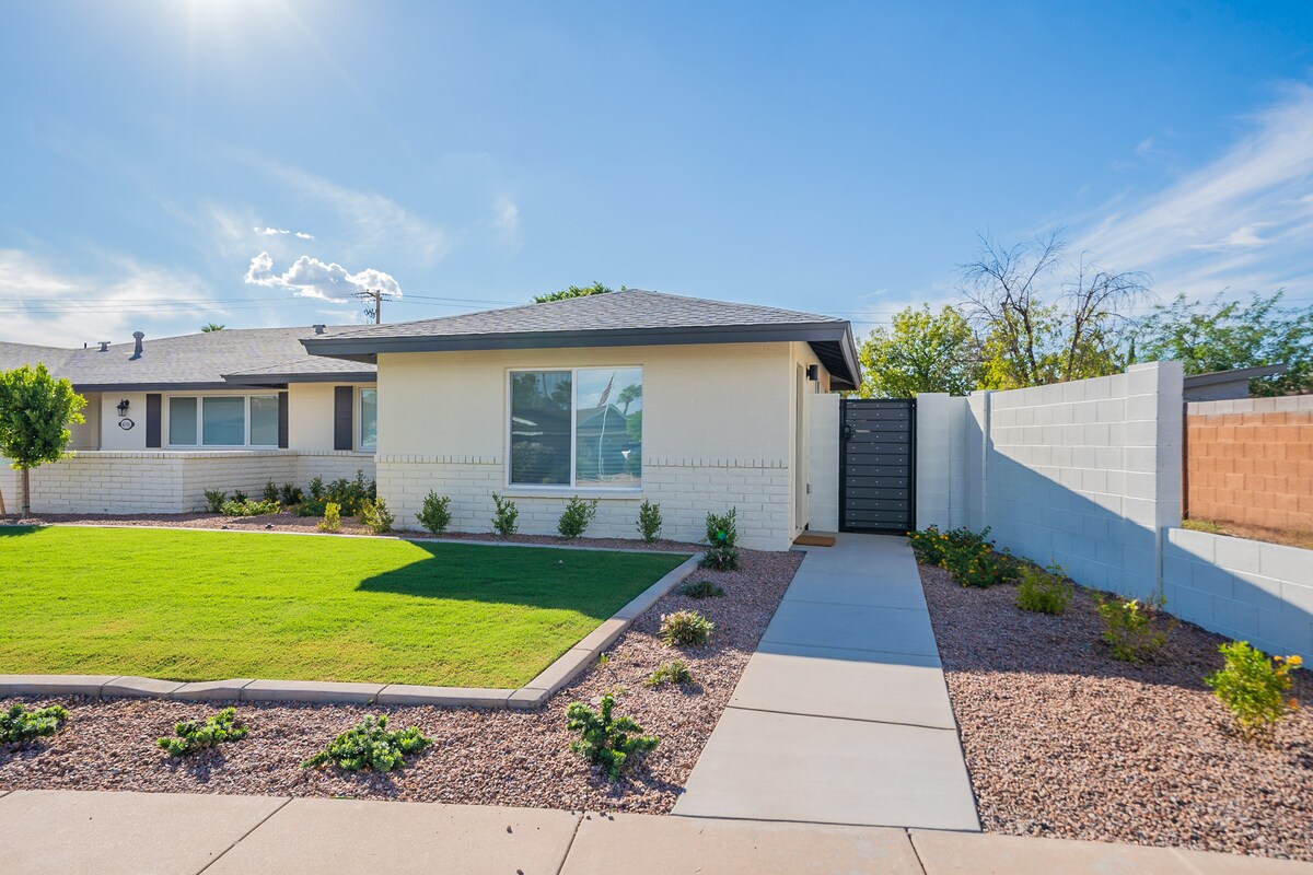 Reliably operated by a top AZ Superhost with 4,400+ 5 star stays. A TRUE find! Best location in Tempe - walkable to downtown, bars and restaurants on Mill, ASU (1.5 miles), Tempe Beach Park, etc. Hidden-away historic guest house with a private yard (and even a secret outdoor 2nd shower). Professionally designed and setup with guest comfort in mind - everything is here for you - premium bed, a dedicated workstation, fully stocked kitchen, an outdoor seating space with bistro lights. INCLUDED 👇