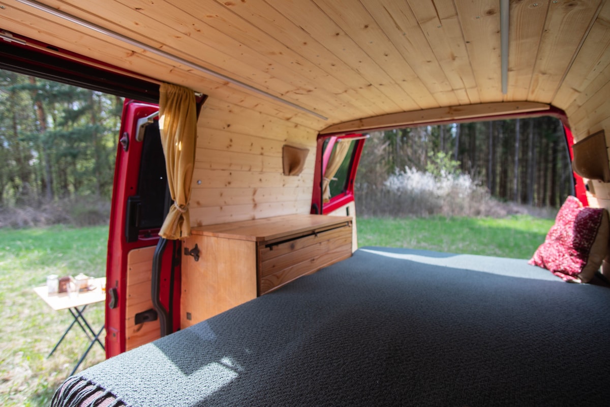 Functioneel houten interieur voelt erg gezellig aan. Hiermee kun je van een bank in een minuut een tweepersoonsbed maken. Keuken met gasfornuis, 25 liter water en koelkast staat tot uw beschikking. Zonnepaneel in combinatie met secundaire batterij geeft voldoende vermogen om al uw apparaten op te laden. Camper is voorzien van borden, bestek en lakens. Er is voldoende ruimte voor je persoonlijke bezittingen. Uw kostbaarheden kunnen worden opgeslagen in het geheime compartiment. Alles is klaar voor jullie.