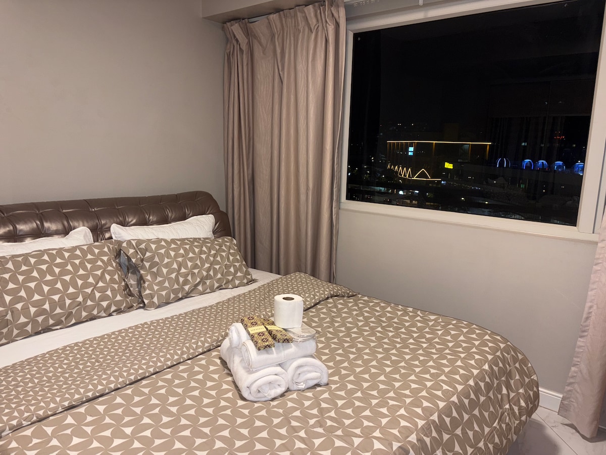 Geniet van het adembenemende uitzicht op de zonsondergang van Manilla Bay en van het prachtige nachtzicht op de skyline van Paranaque. Gelegen in het hartje Manilla op enkele minuten afstand van pretparken, culturele bezienswaardigheden, ambassades en winkelcentra. De Radiance Manila Bay is nog geen jaar oud. Het is een zeer veilig gebouw met een zwembad van 50 meter, een speeltuin voor het fitnesscentrum van de kinderen en meer. De unit is uitgerust met een 65inch smart-tv, queensize bed, sterke WIFI, wasmachine volledig bestek en kookbenodigdheden.