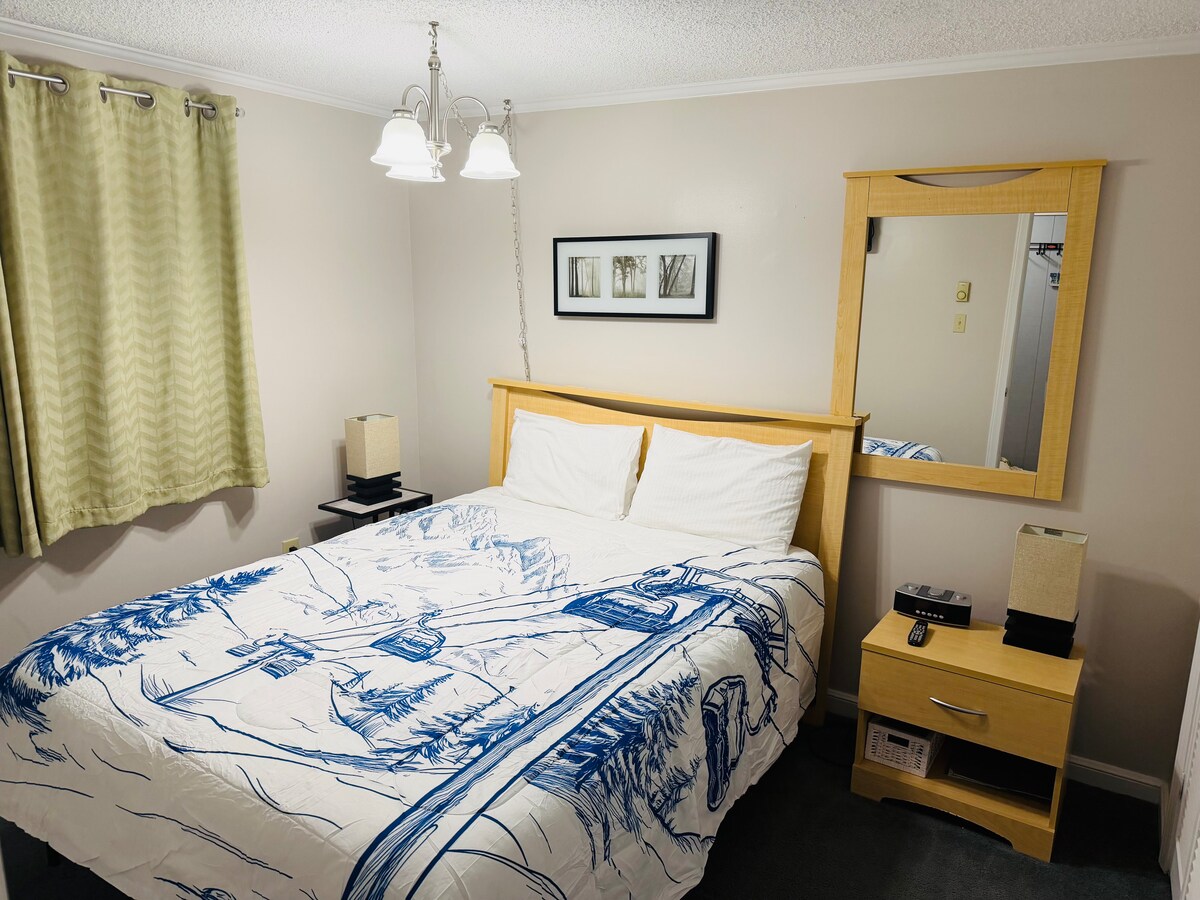 Ontspan op een schilderachtige en gezellige plek bij Snowshoe. Dit studio-appartement voor vier personen is uitgerust met een queensize bed en een queensize slaapbank,volledig bad, handdoeken, beddengoed, keuken inbegrepen. Het appartement bevindt zich op de eerste verdieping;er zijn geen trappen voor gemakkelijke toegang vanaf de parkeerplaats. Neem 5 minuten lopen om toegang te krijgen tot de pistes vanaf de Powderidge helling en lift. Geniet van de houtkachel met gratis brandhout tijdens het skisysteem. Gratis en voldoende parkeergelegenheid bij het appartement. Wacht bij de bushaltehut, loop 10 minuten naar het dorp