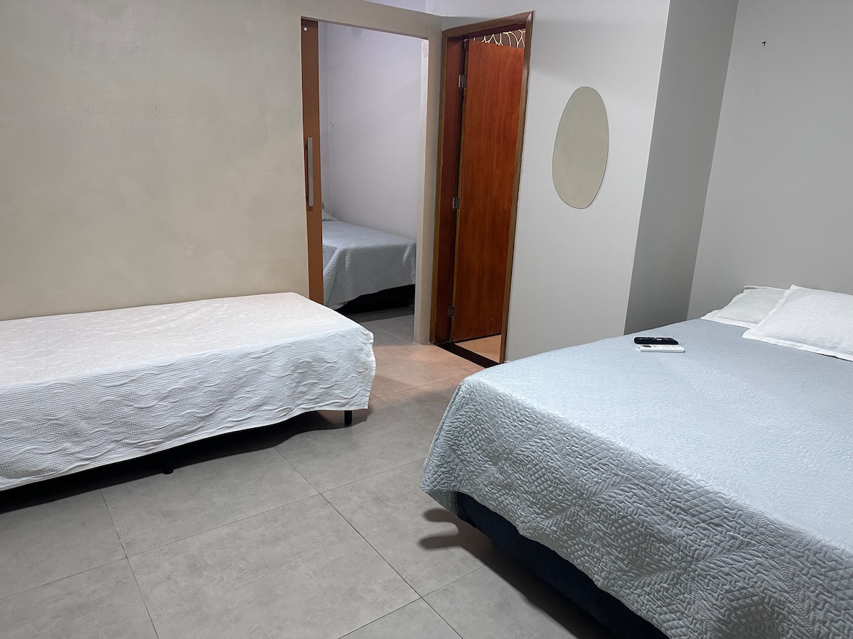 Welkom! Tussen 28/12 en 2/1/26 accepteren we reserveringen met een minimum van 5 nachten. Ontbijt en beddengoed en badlinnen inbegrepen. Onze ruimte ligt op 50 meter van het strand van Riviera de São Lourenço en op 300 meter van het strand van Itaguaré, dat wil zeggen, precies tussen beide. De buurt is veilig, met het strand van São Lourenço 's nachts verlicht. Het heeft restaurants, pizzeria's, gastrobar c live sound, bakkerijen, apotheek, ijs, supermarkten en fietsverhuur op het prachtige Itaguare-strand.