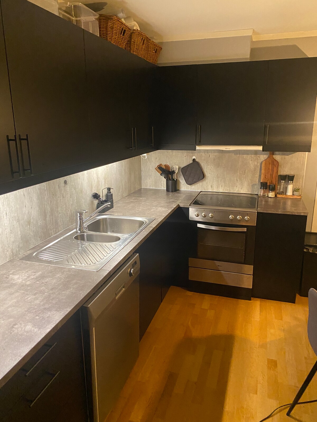 Het appartement maakt deel uit van een one-bustad en heeft een gloednieuwe keuken met nieuwe apparaten, een slaapkamer met een tweepersoonsbed, een woonkamer met slaapbank voor 2 personen en een grote badkamer met bad. Het is mogelijk om gebruik te maken van de tuin en de buitenruimte bij de woning. Gratis parkeren. Prachtig uitzicht en op slechts 10 minuten lopen van het stadscentrum.