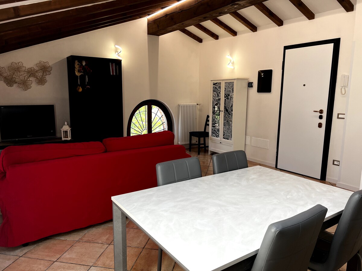 Appartamento sito all'interno di una villa di campagna immersa nel verde. Al secondo e ultimo piano, con accesso solo tramite scala. Accogliente, confortevole e arredato in stile contemporaneo. -Ampia camera matrimoniale - Camera con letto a una piazza e mezzo - Bagno con doccia di grandi dimensioni e zona lavanderia - Soggiorno di oltre 20mq molto luminoso con zona cucina interamente attrezzata e divano letto -Ampio giardino a disposizione Parcheggio gratuito all'interno della proprietà