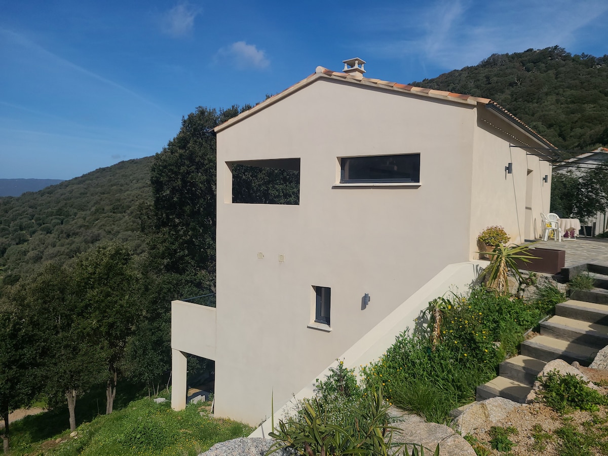 Dit nieuwe huis uit 2025 ligt in Sollacaro, in het hart van een uitzonderlijke natuurlijke omgeving, en biedt een adembenemend uitzicht op de Valinco-vallei. Hier komt alles samen voor een onvergetelijk verblijf, tussen absolute rust, prachtige landschappen en moderne gemakken.
