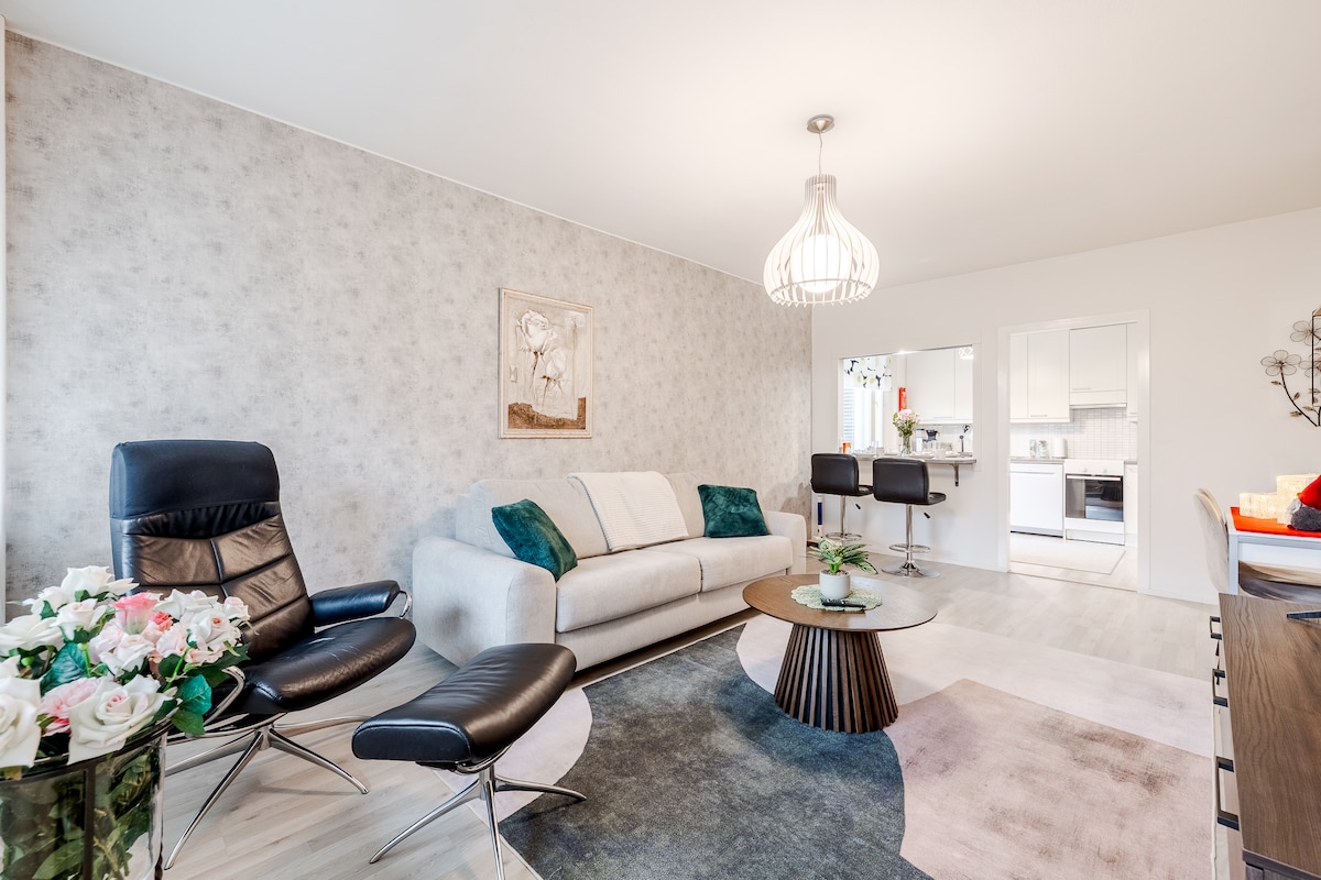 Winter Dream Suite – Luxe en ontspanning in de buurt van het stadscentrum Dit hoogwaardige en vlekkeloze appartement is geschikt voor maximaal vier gasten en beschikt over een eigen sauna en een gezellig balkon. De locatie is perfect: een rustige omgeving zorgt voor rustgevende nachten, maar het stadscentrum met zijn diensten en bezienswaardigheden ligt op slechts een korte wandeling. Het appartement op de tweede verdieping in Scandinavische stijl heeft een grote woonkamer, een nis met een queensize bed, een sauna en een gemeubileerd balkon. Volledig uitgeruste keuken.