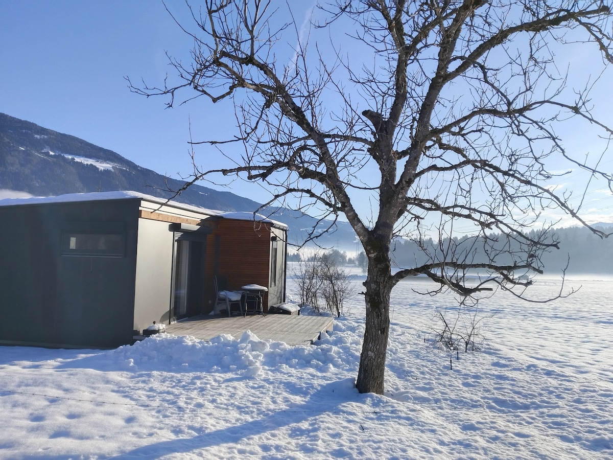 Mini-huis omgeven door het groen van de minigolfbaan Valbruna. Het kleine huis is het tweede op een kleine heuvel. Binnen vind je een tweepersoonsbed, koelkast, elektrische koffiepot, broodrooster, magnetron, waterkoker en koffie, snacks, brood voor toast, jam. In de badkamer douche, wastafel en toilet met ingebouwd bidet. Laat het me weten als je laat in de winter aankomt, zodat we vroeg kunnen opstaan. de verwarming.