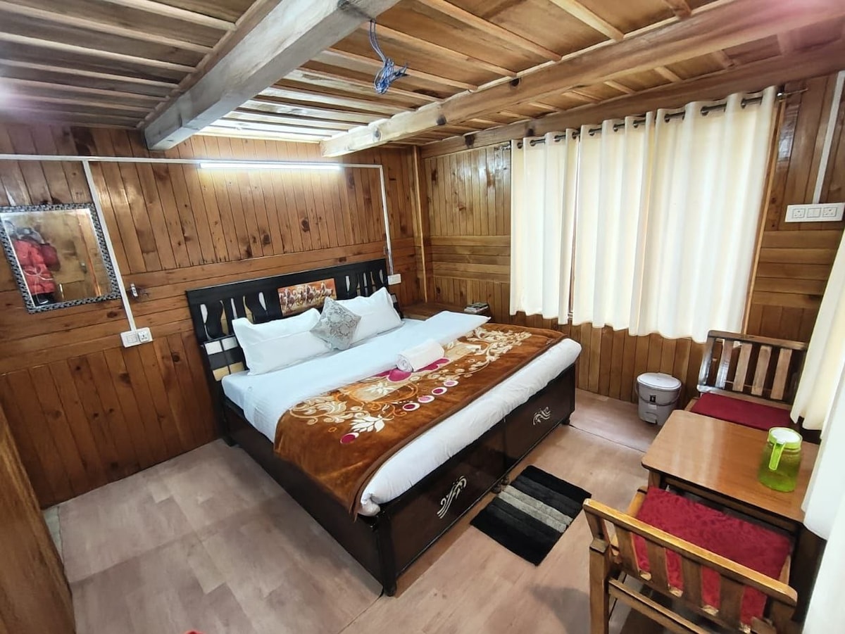 * Relax with the whole family at this peaceful place to stay. a wooden cottage in the middle of mountain with a spectacular view * there's a spacious bedroom, and an attic which function as a bedroom * bone fire 500/- * Broadband Wifi free * our cottage is in one of the most beautiful spots in the town. * Every single guest who stayed with us left happy. * there's a 700 meter trek, hut 99% of the young adults can make it.