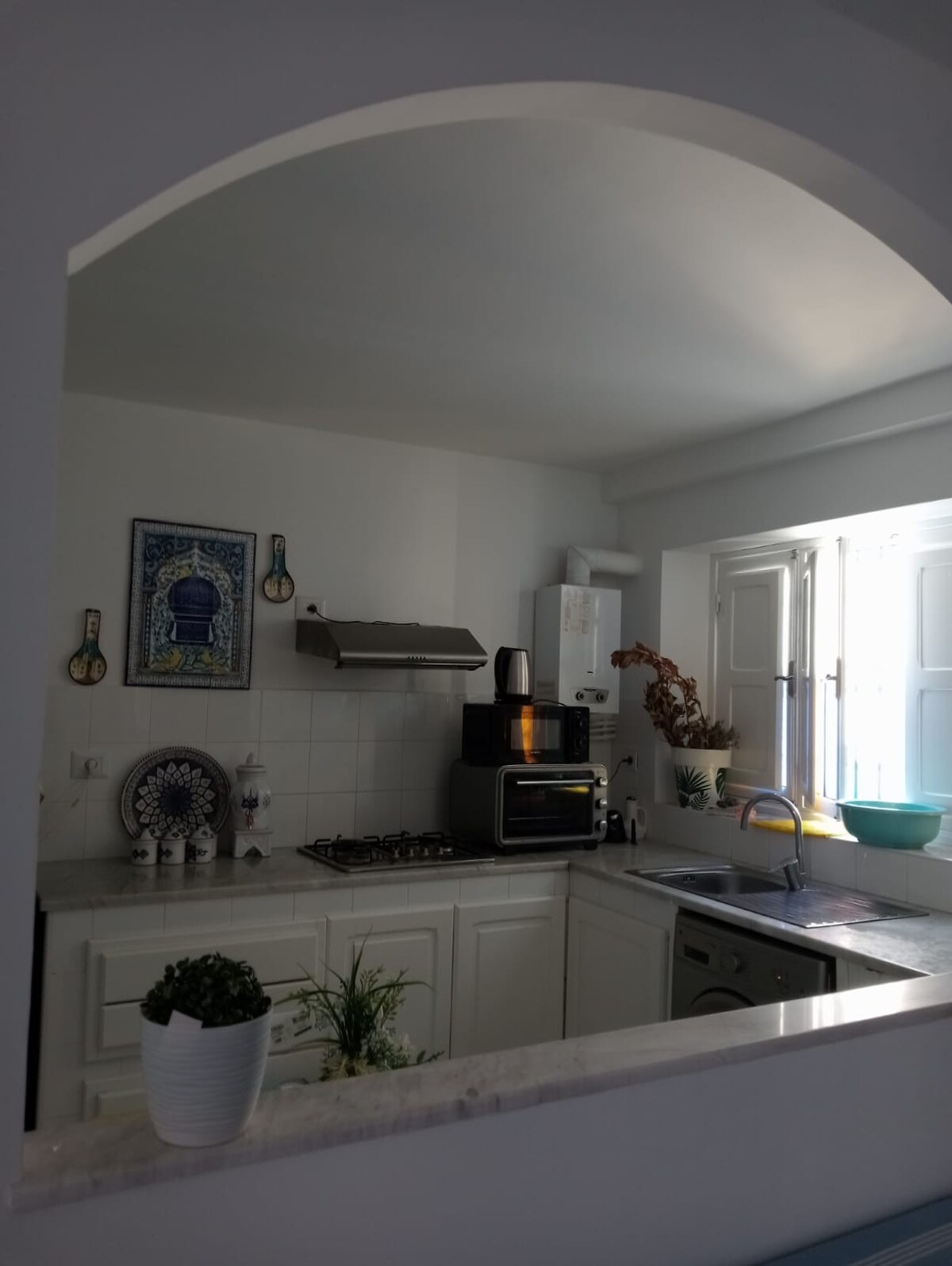 El houch is an apartment decorated in a traditional Tunisian style displaying a unique and typical style . 2 min walk from the beach 3 km To Port El Kantaoui ( Harbour Marina ) 3 km from the Mall Of Sousse ( Shops, Cinema, children's parks and restaurant ) 10 km from downtown Sousse ( Sousse Medina, Archaeological Museum )