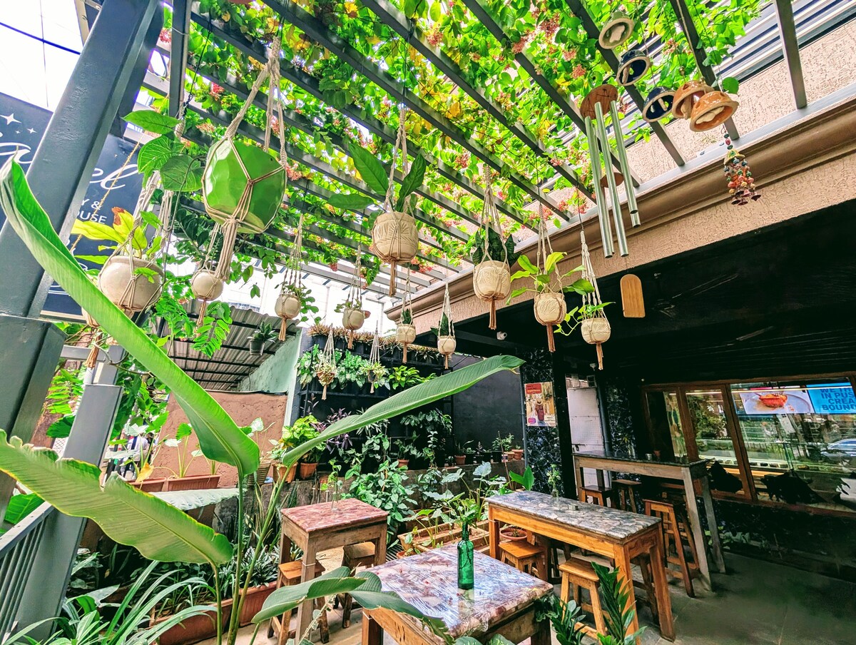 Florin Stays is je sweet spot in Vagator — Goa's feestwijk. Loop naar de hele nacht bars, grub hubs en stranden (2–15 minuten). Geen taxistress, geen politie puinhoop. Afgelegen werknemers, soloreizigers, koppels — we hebben comfortabele kamers, snelle wifi, eigen balkons, scooterbezorging, verfrissende douches, gefilterd water en gezellige werkhoekjes. Gewoon comfortabele kamers, goede vibes en de perfecte uitvalsbasis om je beste Goa-leven te leven.